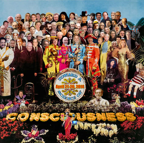 会议海报居然PS了甲壳虫乐队经典唱片“Sgt. Pepper's Lonely Hearts Club Band”的封面,人物头像全都换成了哲学家,相当有趣。